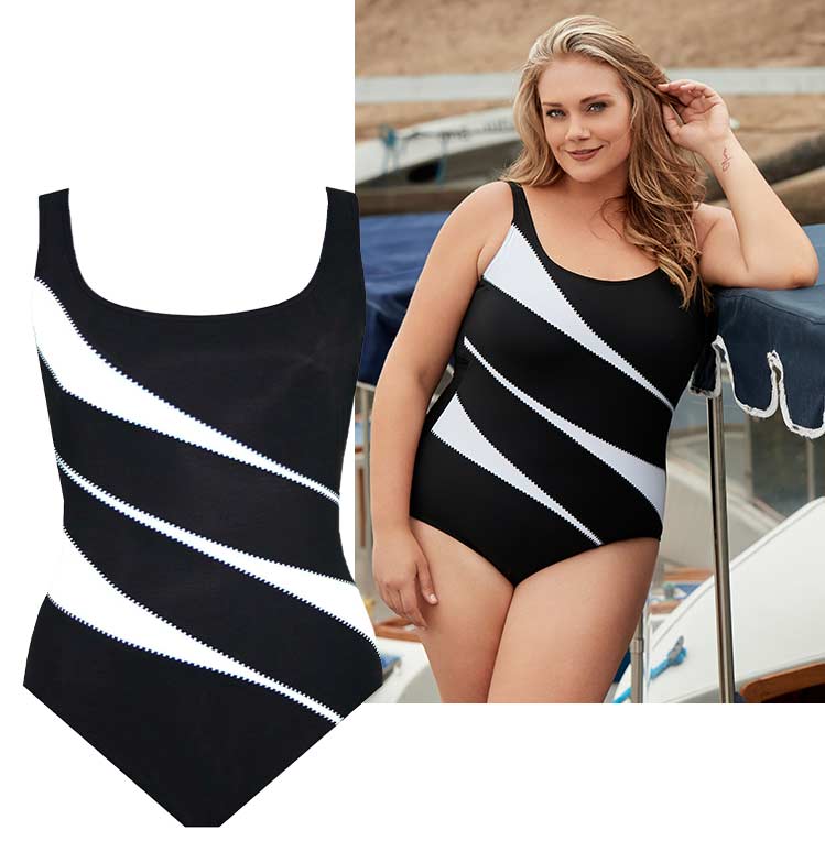 - Best Plus-Size Tummy-Control Swimsuit: Plus Size Colorblock Helix One Piece Swimsuit