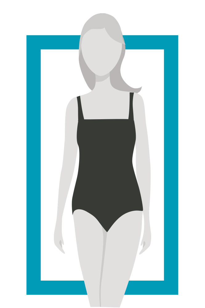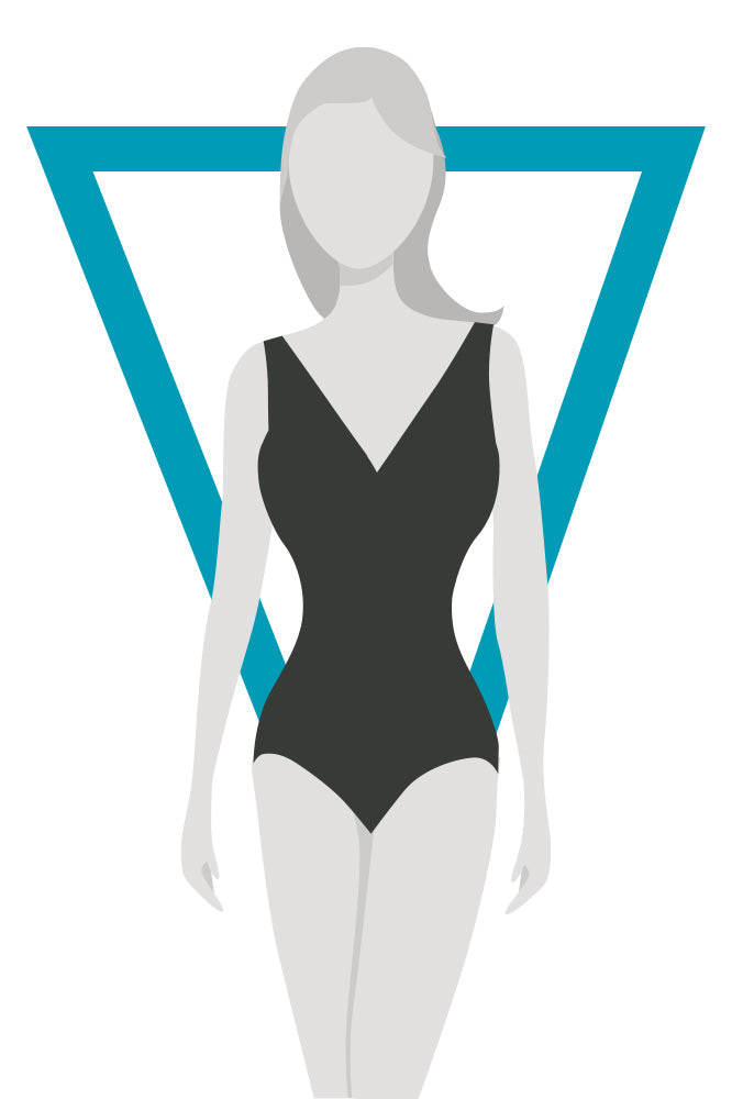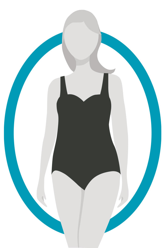A rectangle-shaped figure consists of a longer torso with equal hip and shoulder widths. Your figure creates more of a straight line down from your shoulders to your hips. This body type is a more athletic build, but you’ll tend to gain weight around the tummy and midriff area. With this shape, you’ll want to go for bolder swimsuit styles if you want to add curves and accentuate a slim waist. Features like ruffles, plunging necklines, and fabric ruching will help accentuate those curves and showcase your best figure.