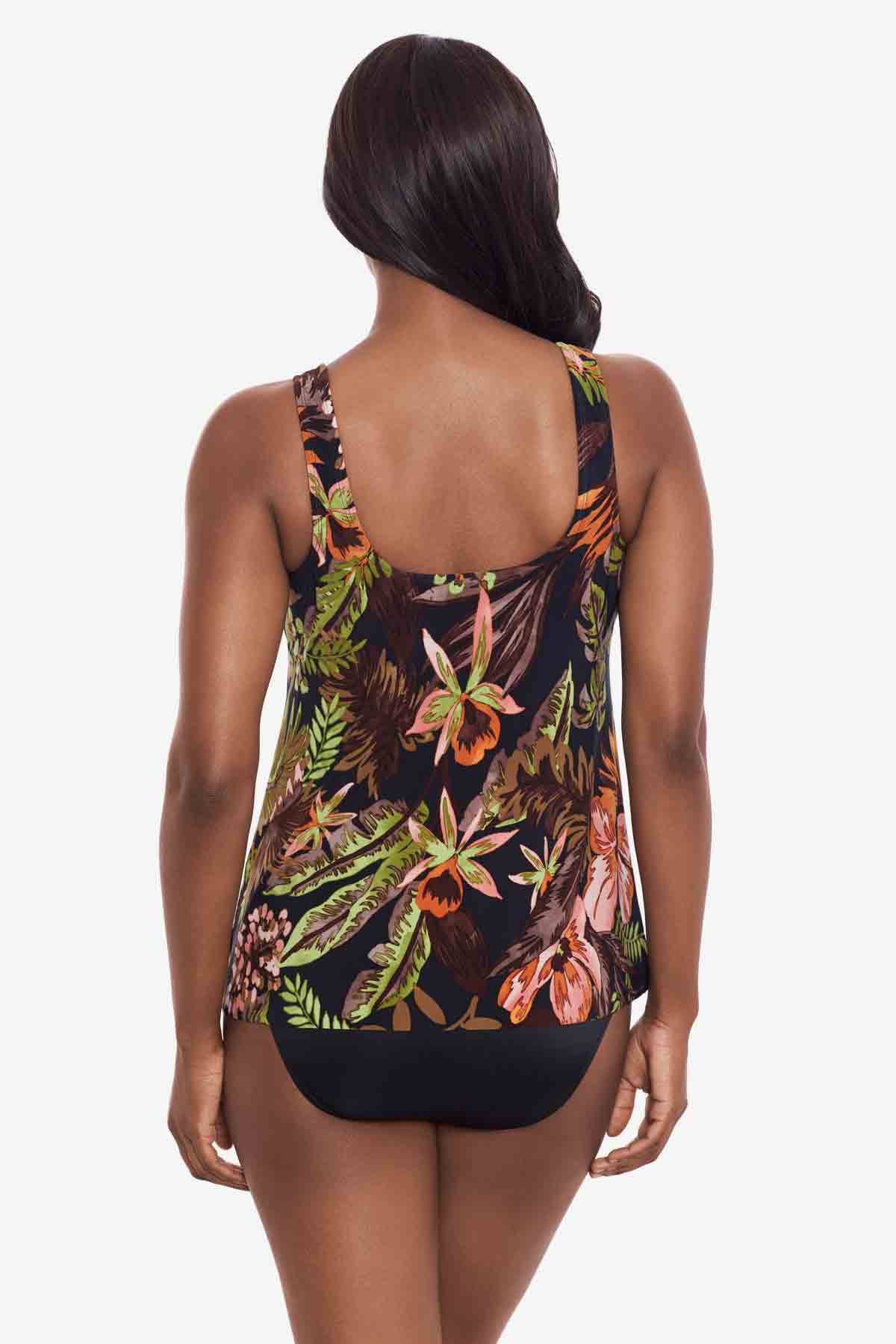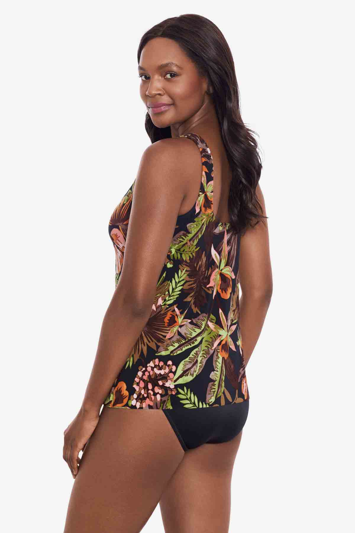 Bright, beautiful, and built to support from hips to head — she's not your average 70-year-old woman's bathing suit. This layered tropical tankini offers gentle lift and shaping, making it perfect among two-piece bathing suits for older women.