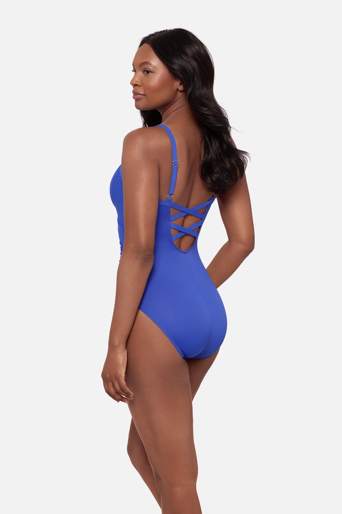 Every detail of this slimming one piece enhances your shape, from precise crossover draping to a hidden molded cup bra.