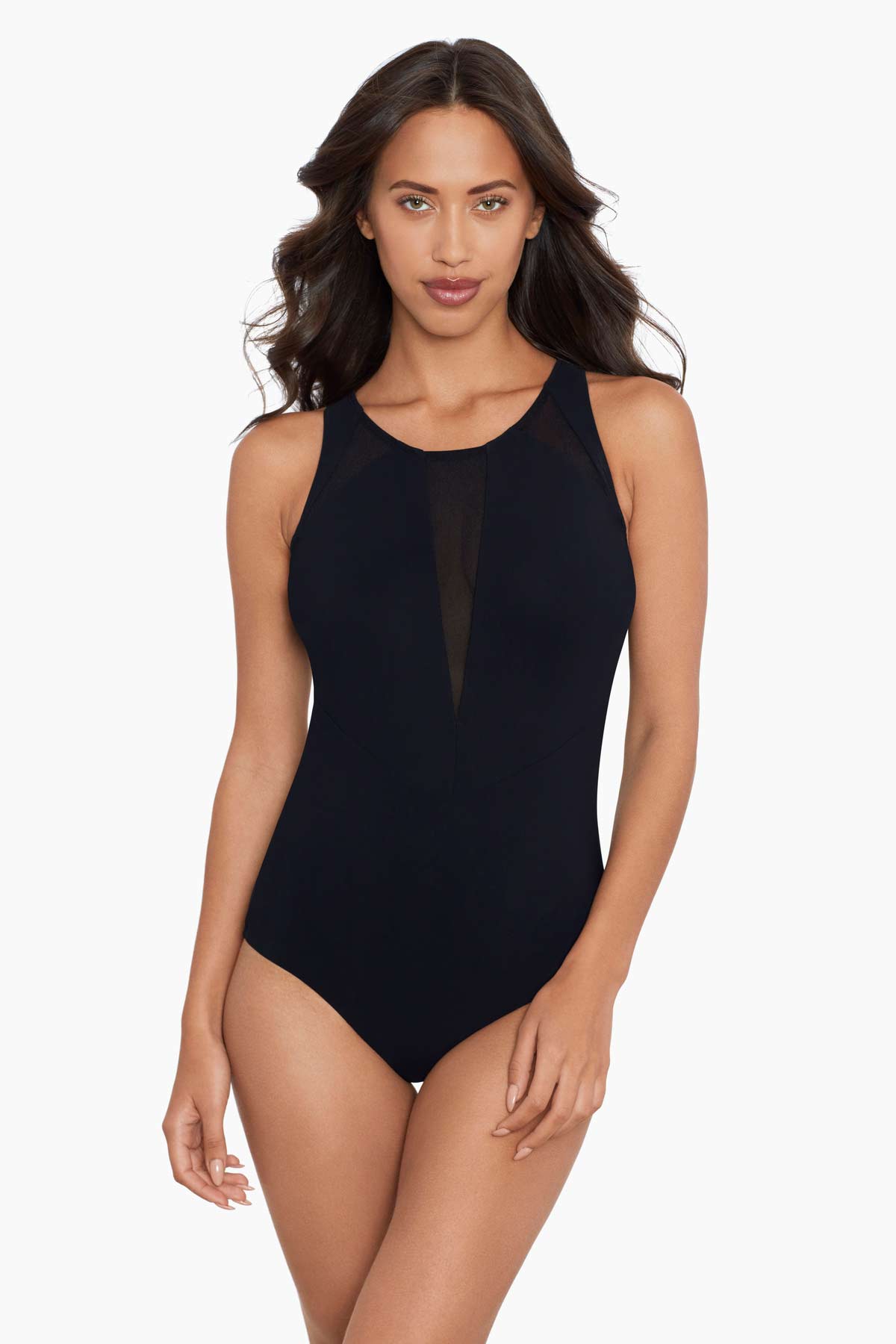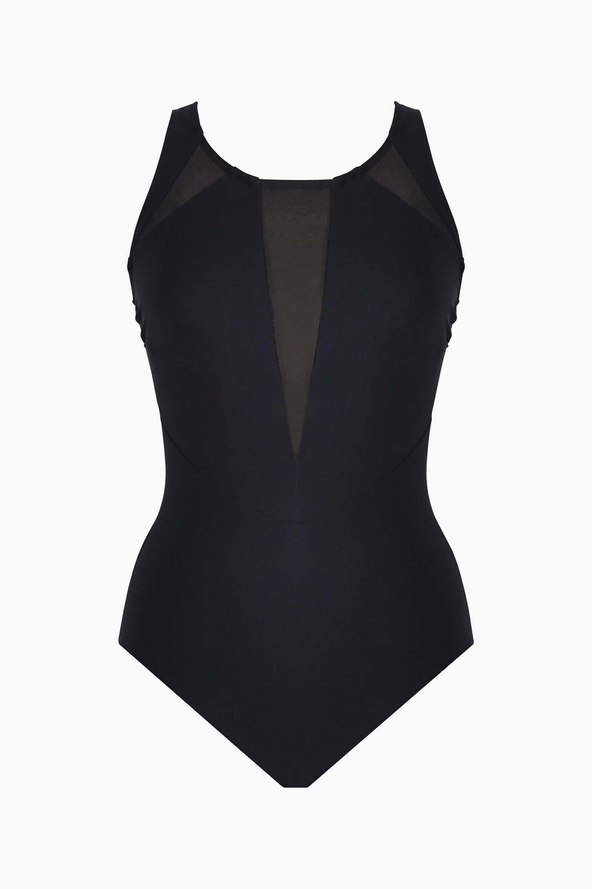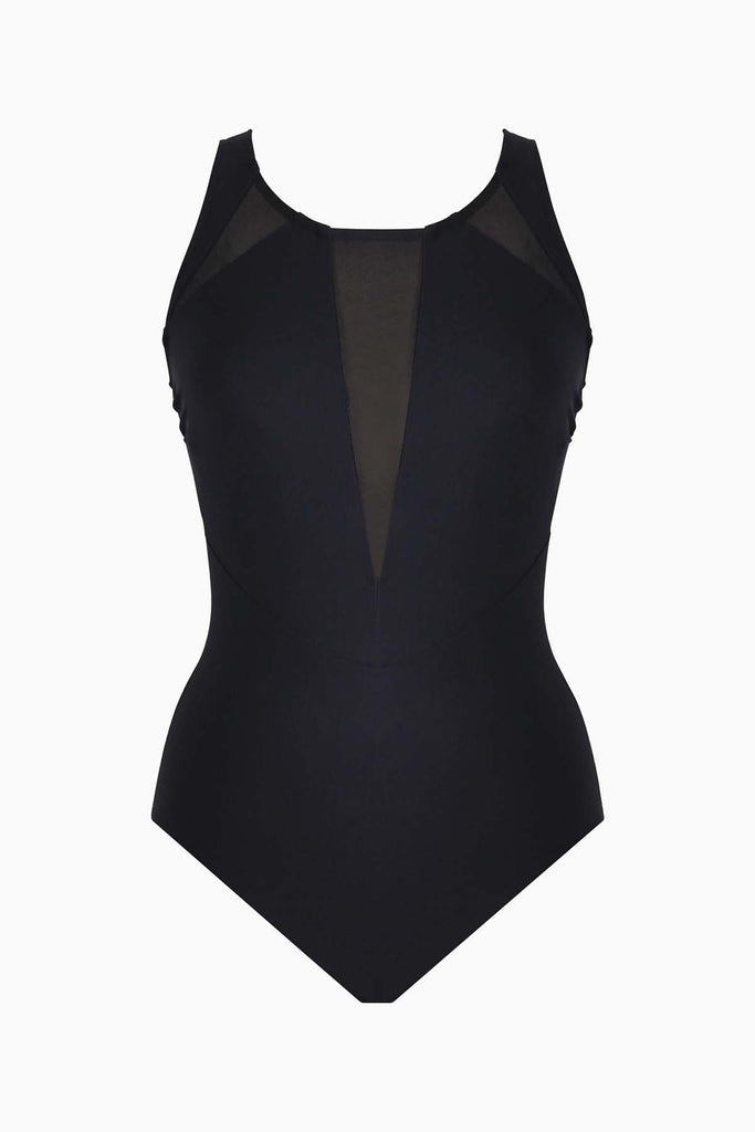• Mesh Inset Splice High Neck Maillot