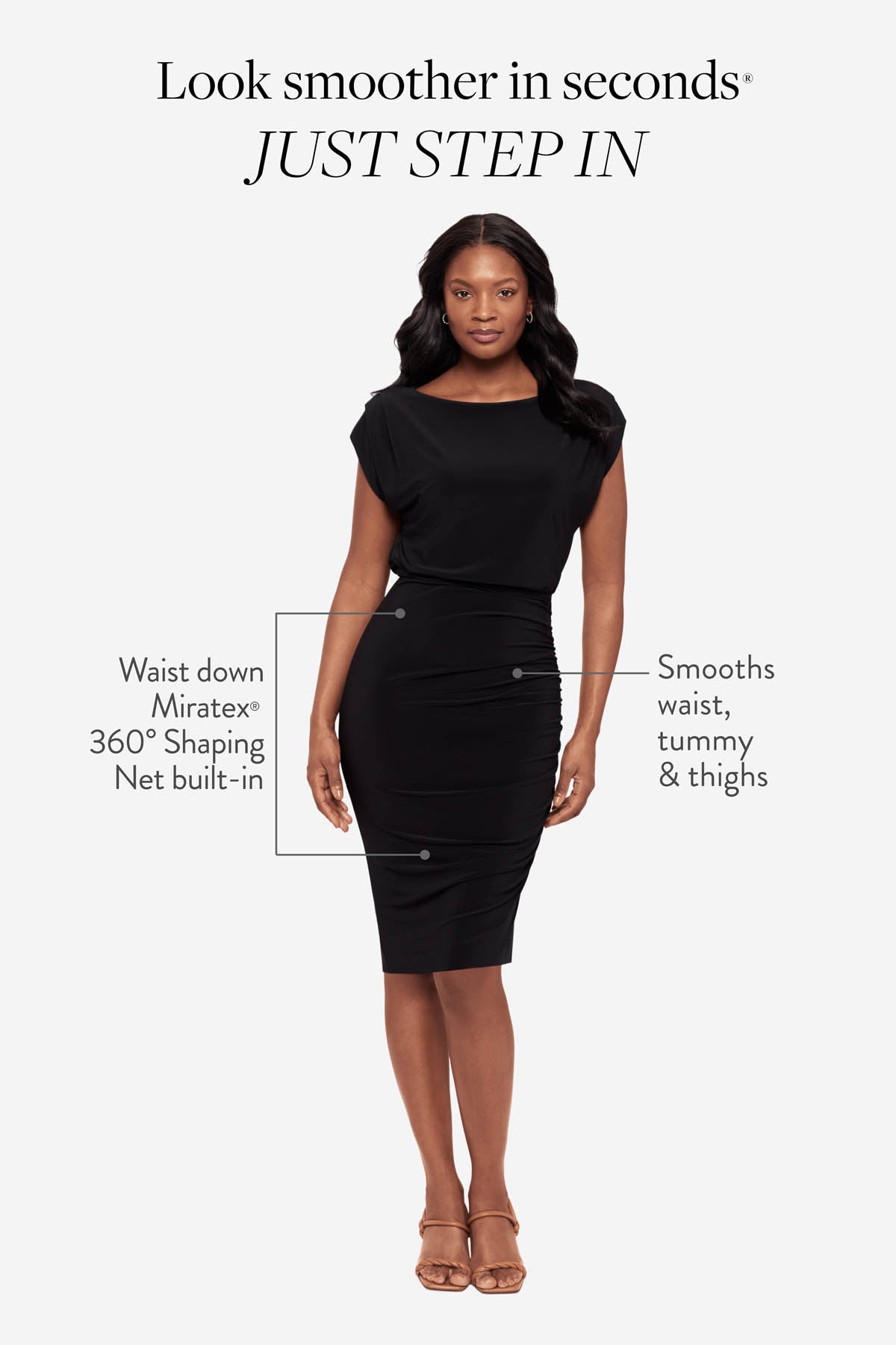 Style that sculpts. This dress smooths, cinches and transforms in seconds. Just step in