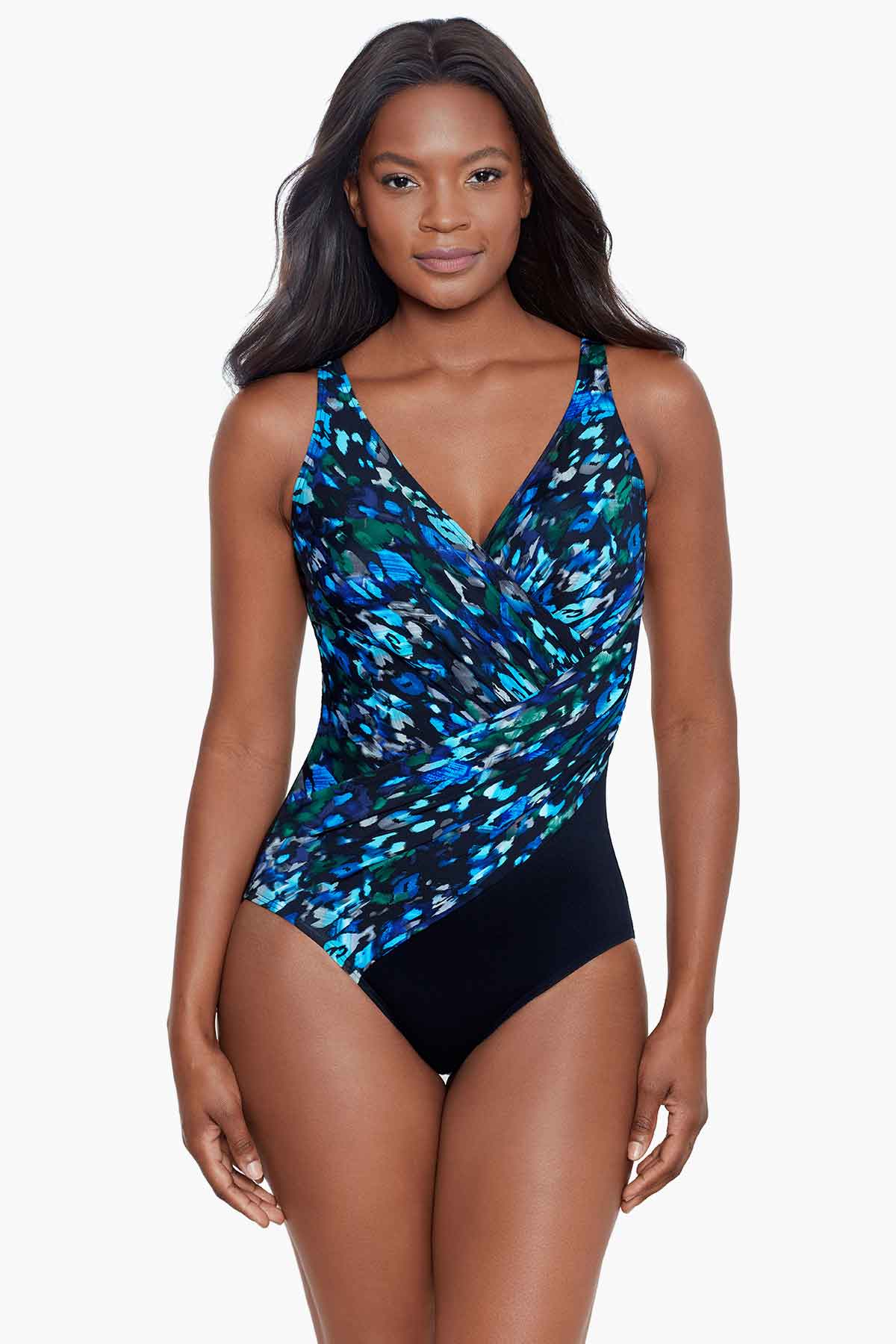 The Sophisticat collection features a striking leopard print created with all our shades of blues, nori, olive, and neutrals matched back to black. Our number-one selling Oceanus is graciously draped to accentuate your shape while the Mirage Tankini Top creates a soft A-line silhouette with signature shaping and draping.