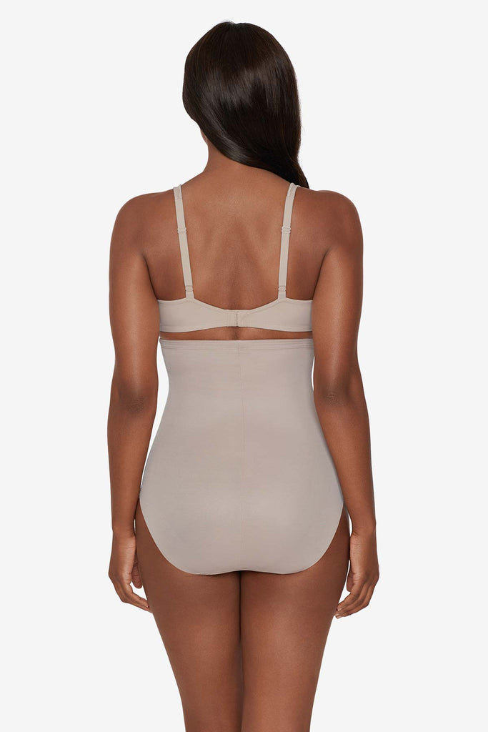 • High-waisted: This brief reaches high on the torso to offer superior control while also preventing muffin top.