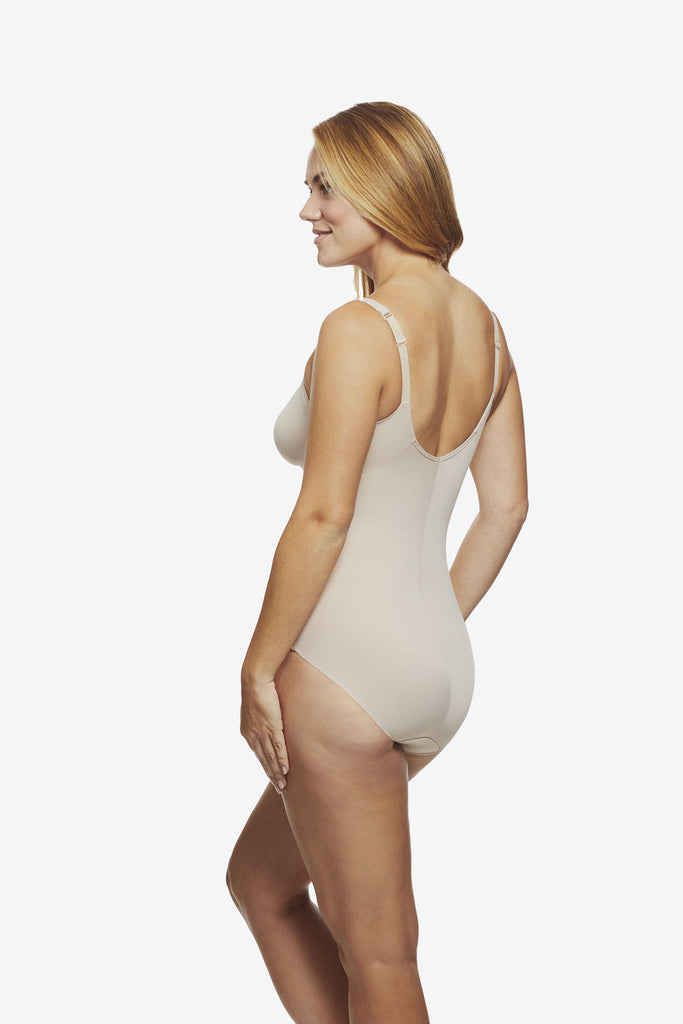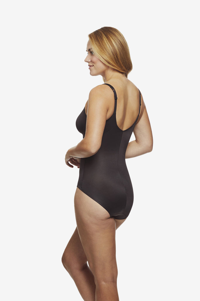 • No side show: Strategically placed upper side panels will shape and flatten under your arms, while its single-ply body fabric will comfortably smooth your back.
