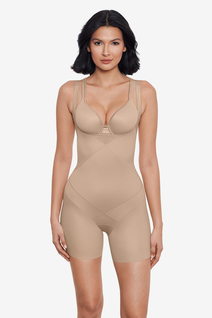 Instant Tummy Tuck! Open Bust Mid-Thigh Bodysuit