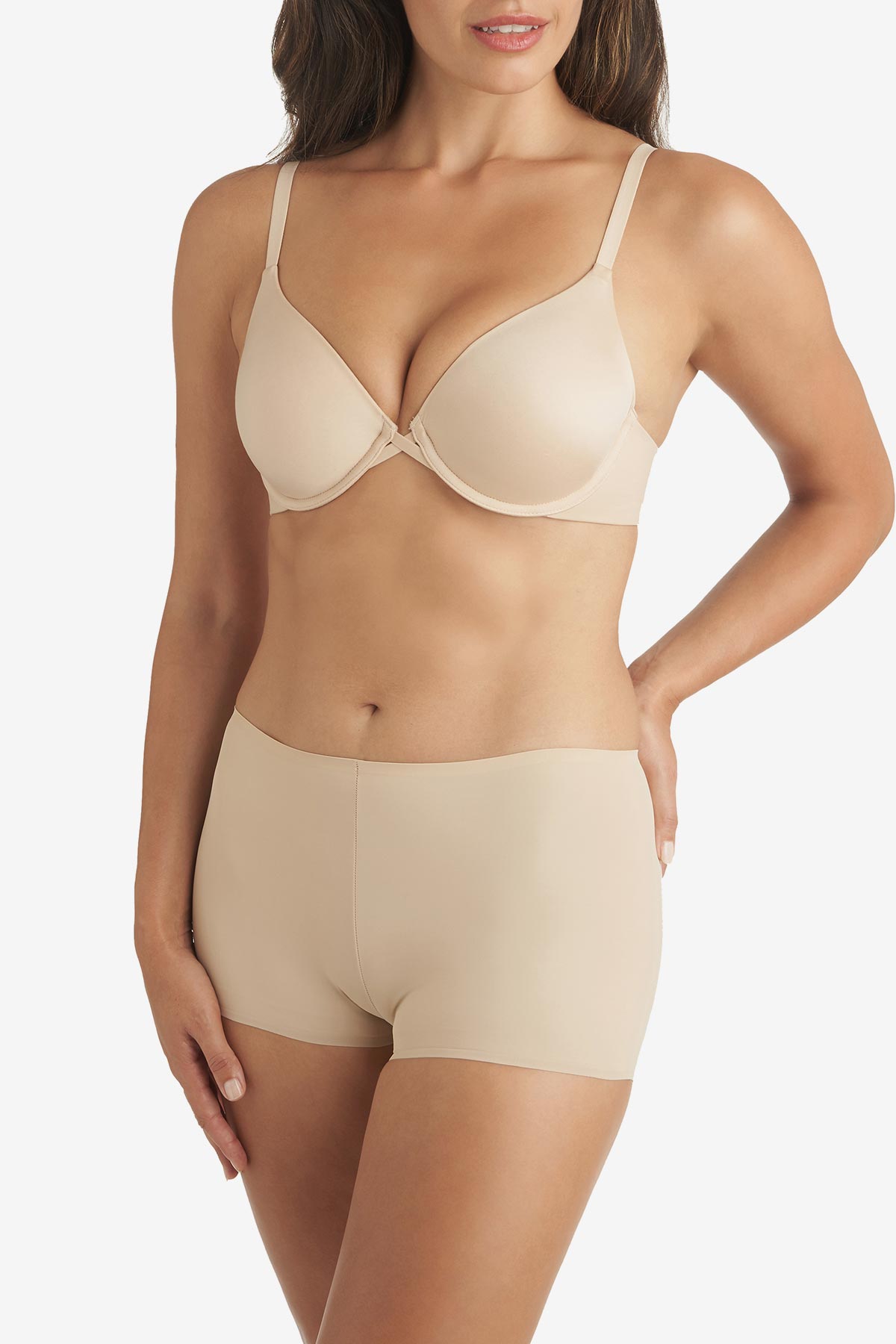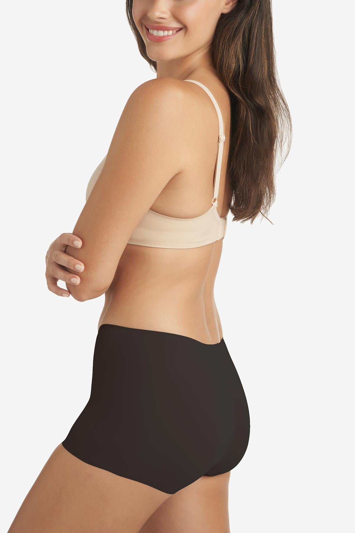 • Boyshort: This mid-rise panty is designed with full front, side, rear, and upper thigh coverage.