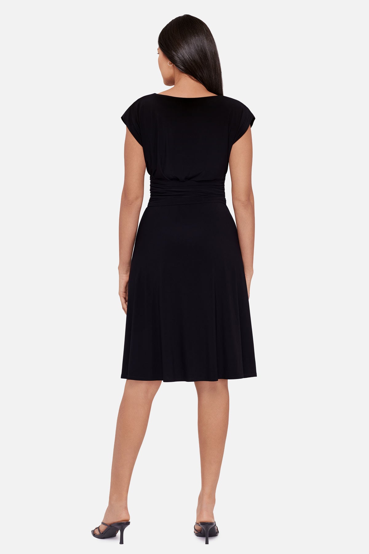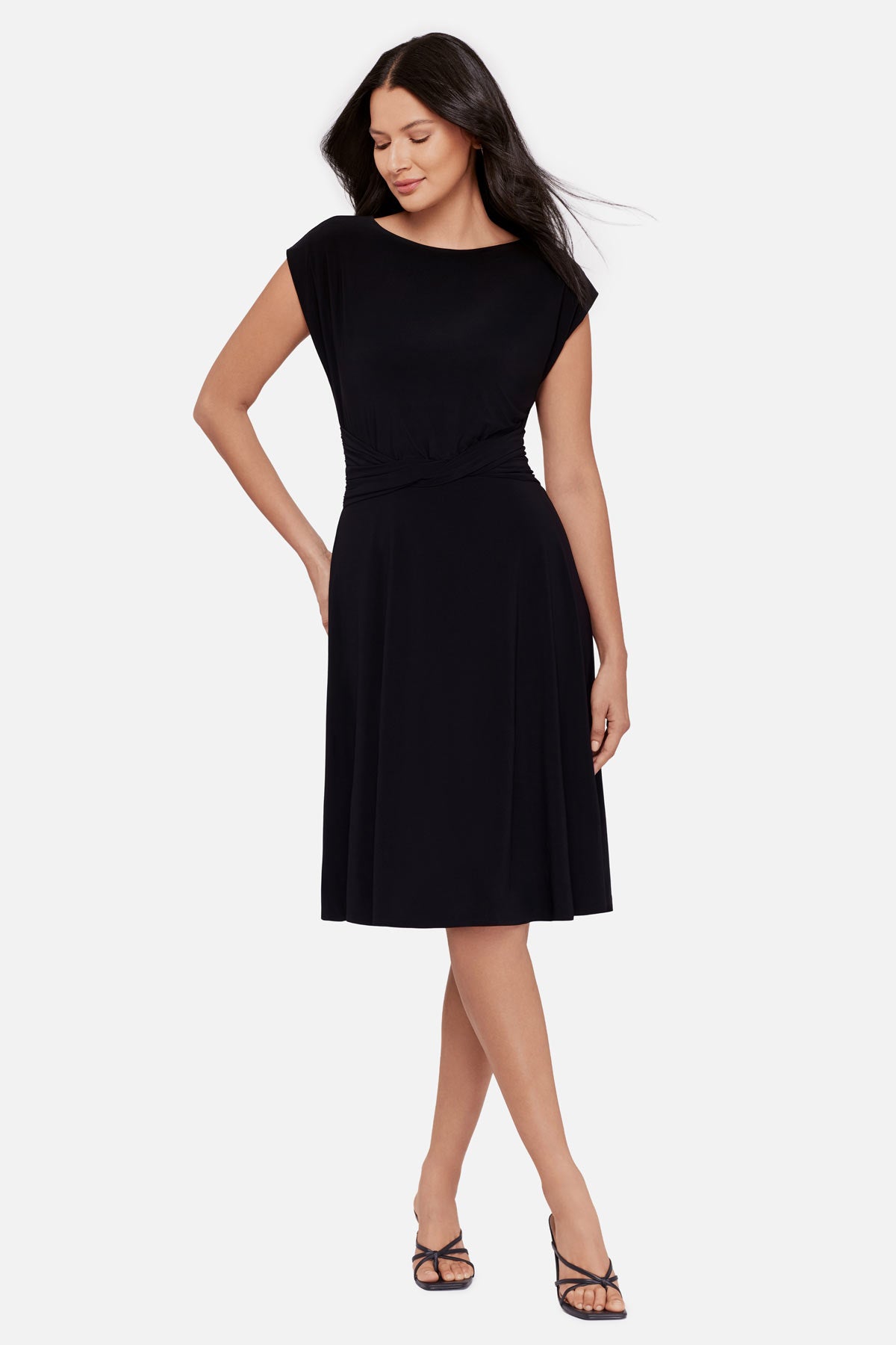 Strategically draped to flatter. Crafted in soft Miramatte™ Jersey that packs like a dream.
