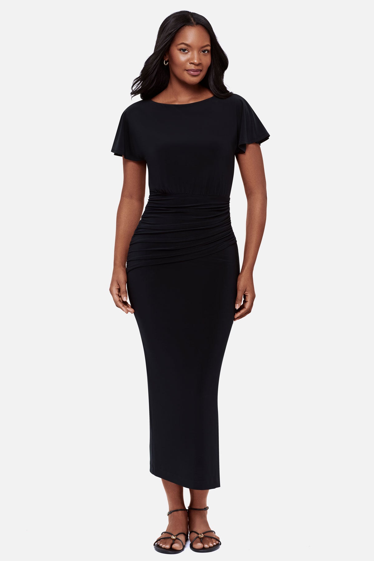 Strategically draped to flatter. Crafted in soft Miramatte™ Jersey that packs like a dream.