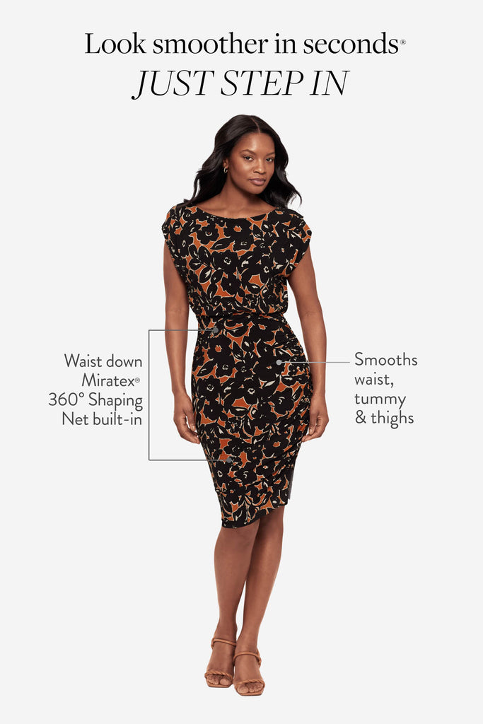 Powered by Miratex® 360° Shaping Net: invisible targeted compression for tummy, waist & thighs.