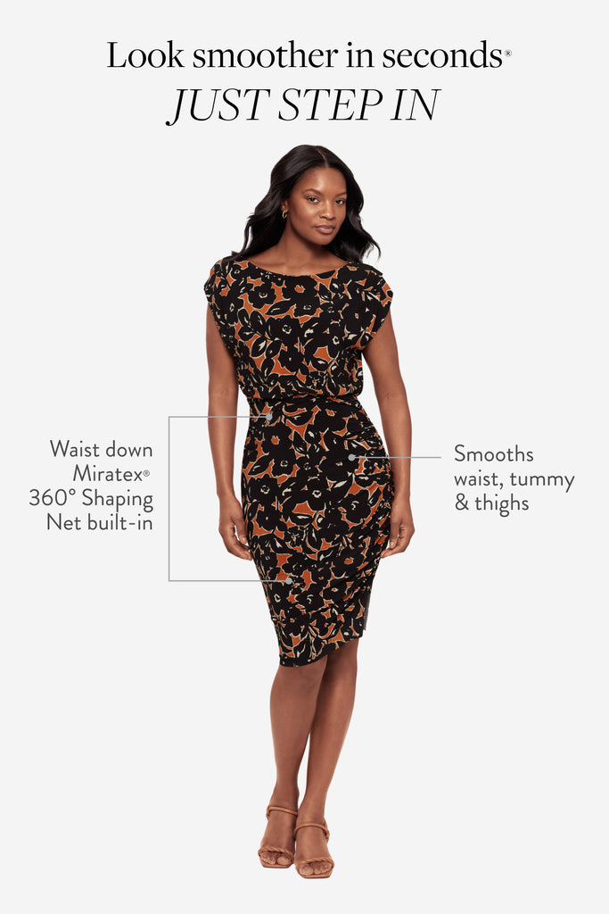 Powered by Miratex® 360° Shaping Net: invisible targeted compression for tummy, waist & thighs.