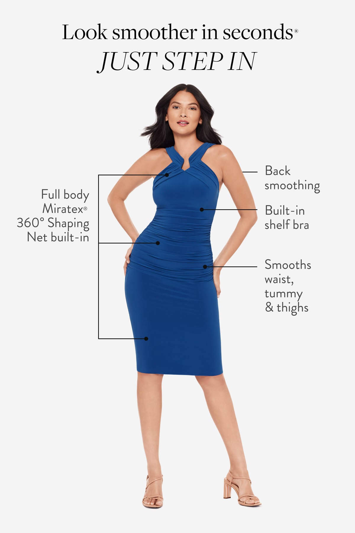 Powered by Miratex® 360° Shaping Net: invisible targeted compression for tummy, waist & thighs. Plus built-in bust support and back smoothing.