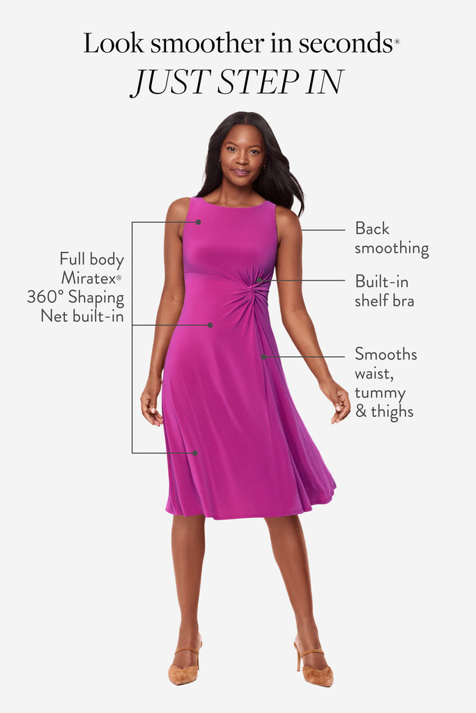 Powered by Miratex® 360° Shaping Net: invisible targeted compression for tummy, waist & thighs. Plus built-in bust support and back smoothing.