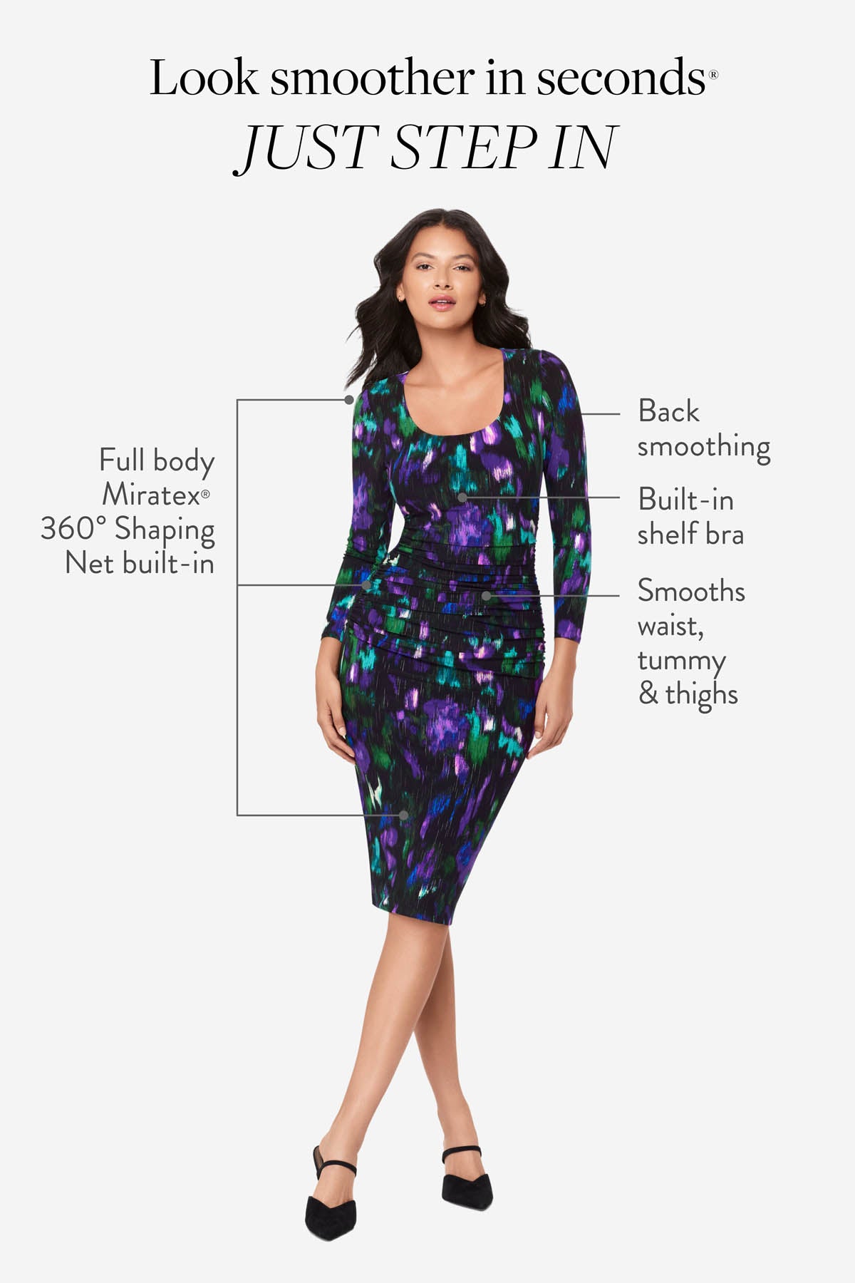 Powered by Miratex® 360° Shaping Net: invisible targeted compression for tummy, waist & thighs. Plus built-in bust support and back smoothing.