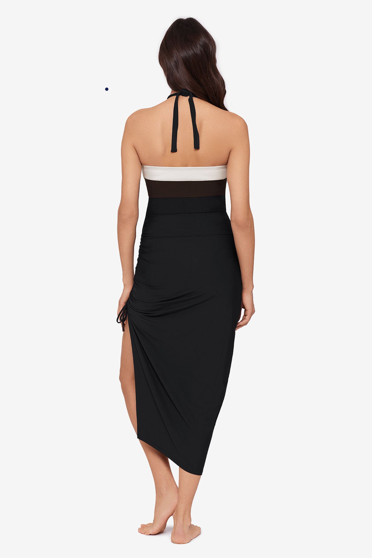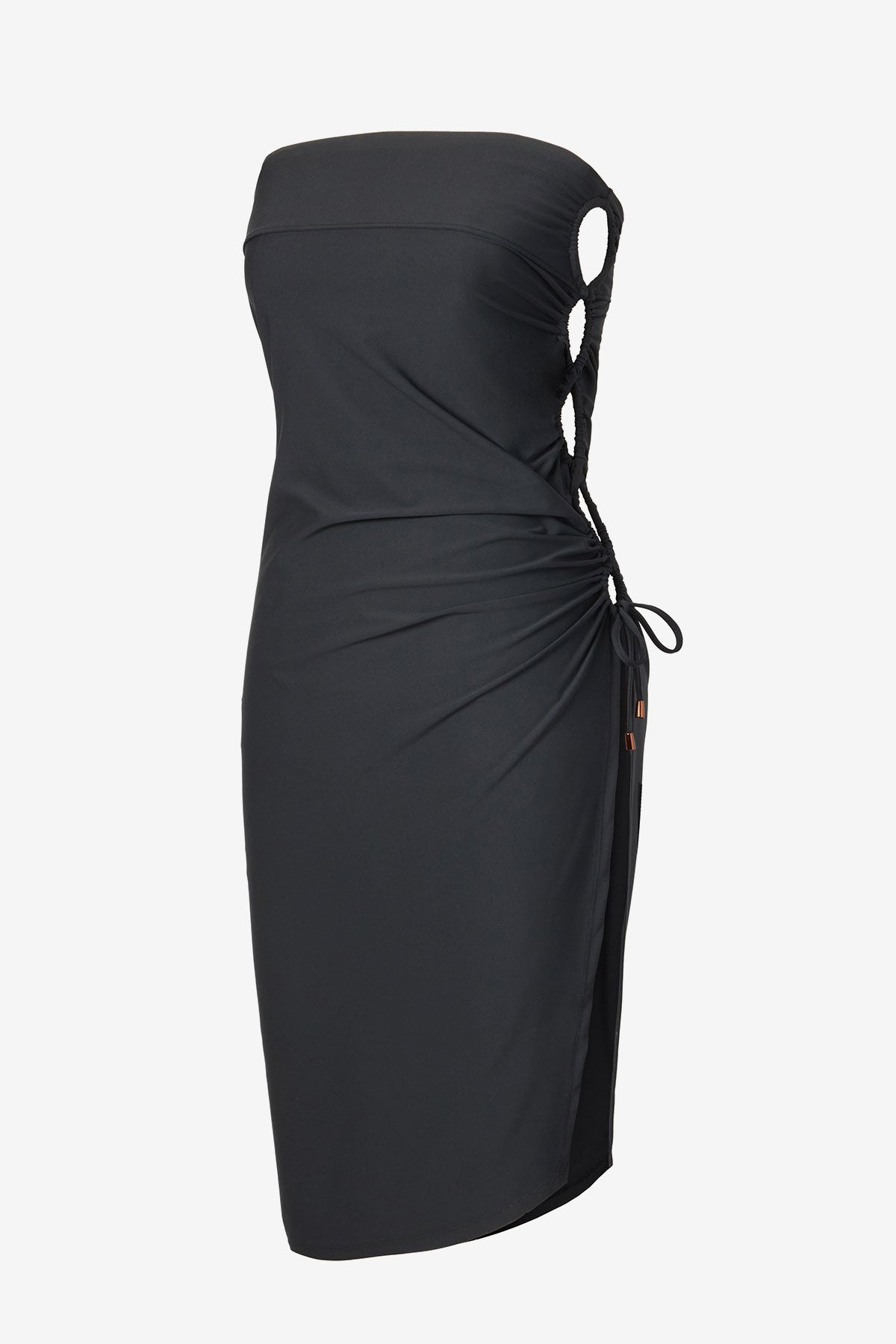 This convertible slip-on skirt doubles as a chic bandeau dress, for endless wear from cabana to cocktails. In fluid jersey, it features a side slit traced by cinched cutouts that can be adjusted with a drawstring tie closure.