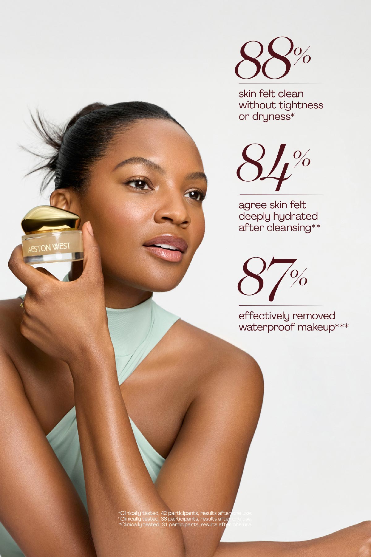 Scoop a fingertip-sized amount and melt between your hands, massaging onto dry skin to dissolve makeup and impurities. Add water to massage into a milky layer, then rinse thoroughly. Use daily in the morning and at night.
