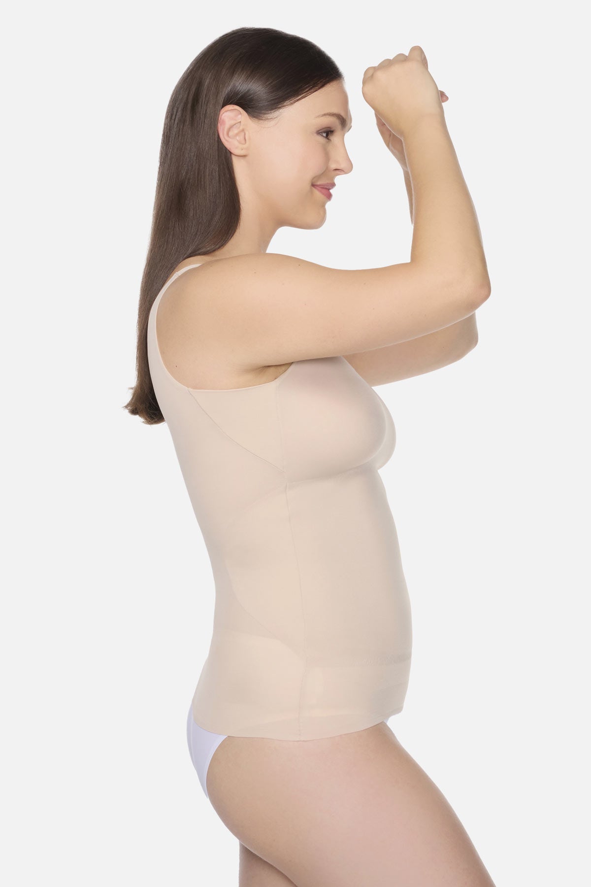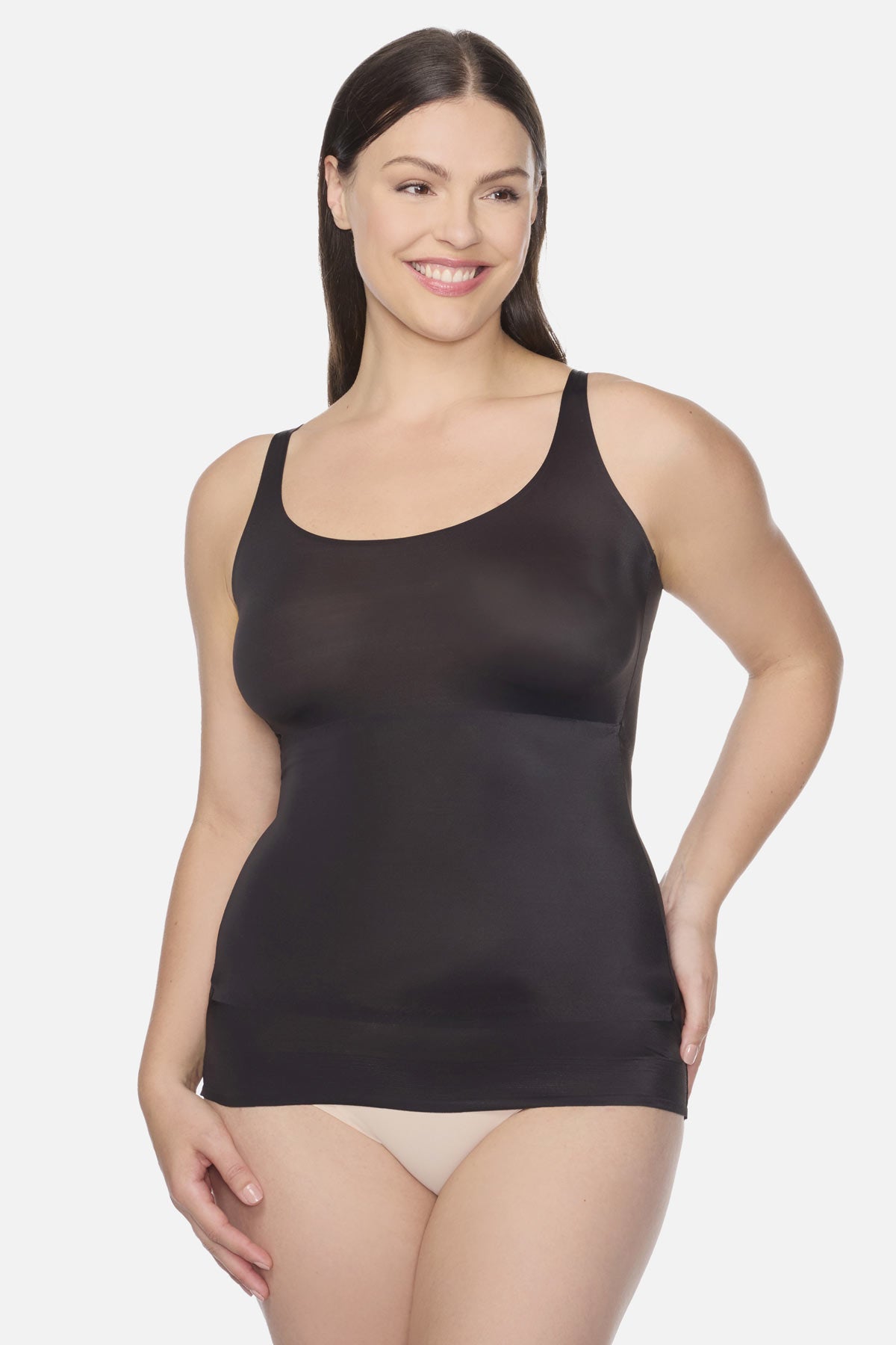 • No side show: Strategically placed upper side panels will shape and flatten under your arms, while its single-ply body fabric will comfortably smooth your back.